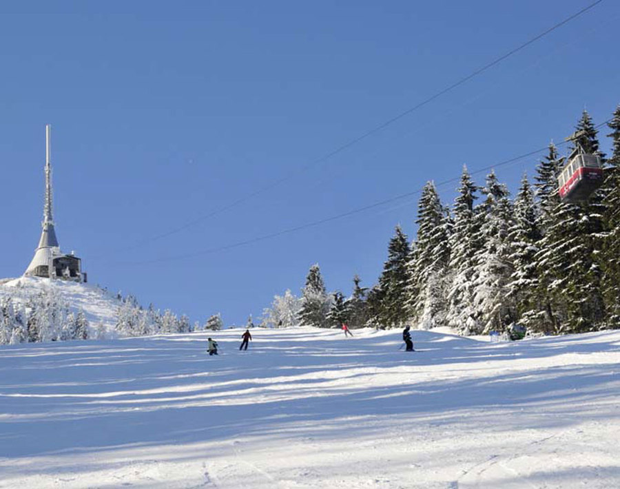 Ski areál Ještěd je moderní lyžařské středisko v dosahu liberecké městské dopravy s vynikající dopravní dostupností. (Český Innsbruck). Lyžařské středisko na Ještědu ležící v nadmořské výšce 540 - 1000 m je pravděpodobně nejpřístupnějším areálem v celých Čechách. V areálu jsou 2 čtyřsedačkové lanovky, 1 dvousedačková, 1 kabinová lanovka na vrchol Ještědu a 6 lyžařských vleků. Je jedním z nejmodernějších areálů v ČR. Pětihvězdičkové středisko dle hodnocení SPLV. Umístění na 3. místě mezi českými areály dle analýzy SWOT pro rok 2009. Má za sebou infrastrukturu velkého města včetně dobré dopravní dostupnosti jak vlastní dopravou, tak i prostřednictvím městské dopravy jezdící přímo k branám areálu. Návštěvníci mohou pohodlně zaparkovat na z jedné poloviny krytém centrálním parkovišti s dostatečnou kapacitou, nebo využít některou z dalších odstavných ploch v areálu samozřejmě zdarma. Ski areál nabízí sjezdovky všech stupňů obtížností od náročných na severní straně až po lehké na prosluněné jižní straně. V areálu je v provozu sjezdovka F10 pro večerní lyžování. Pro začátečníky je k dispozici cvičiště Bucharka, další cvičná plocha je přímo u konečné tramvaje. Nejmenší návštěvníci naleznou v areálu dětské lyžařské hřiště s mnoha zimními atrakcemi a pro rodiče malých návštěvníků nabízíme rovněž možnost využít službu hlídání dětí přímo v areálu. Na našich webových stránkách máme novou interaktivní mapu, která detailně popisuje celý areál. Areál je osazen čtyřmi webovými kamerami v HD rozlišení, které právě v této mapě můžou návštěvníkovi ihned zprostředkovat co se právě na sjezdovkách děje a jak vypadá jejich provoz. Další novinkou jsou nové odbavovací brány na lanových drahách Černý vrch a Skalka, které jsou osazeny LED obrazovkami, které určitě zlepší informovanost lyžařů. Tuto novinku vlastní pouze deset nejlepších areálů v České republice. Samozřejmostí je rovněž kvalitní občerstvení ať už na každé sjezdovce, nebo v centrální samoobslužné restauraci se sociálním zázemím. Návštěvníci mohou rovněž využít některou ze dvou úschoven zavazadel nacházejících přímo u dolních stanic lanových drah Skalka a F 10.