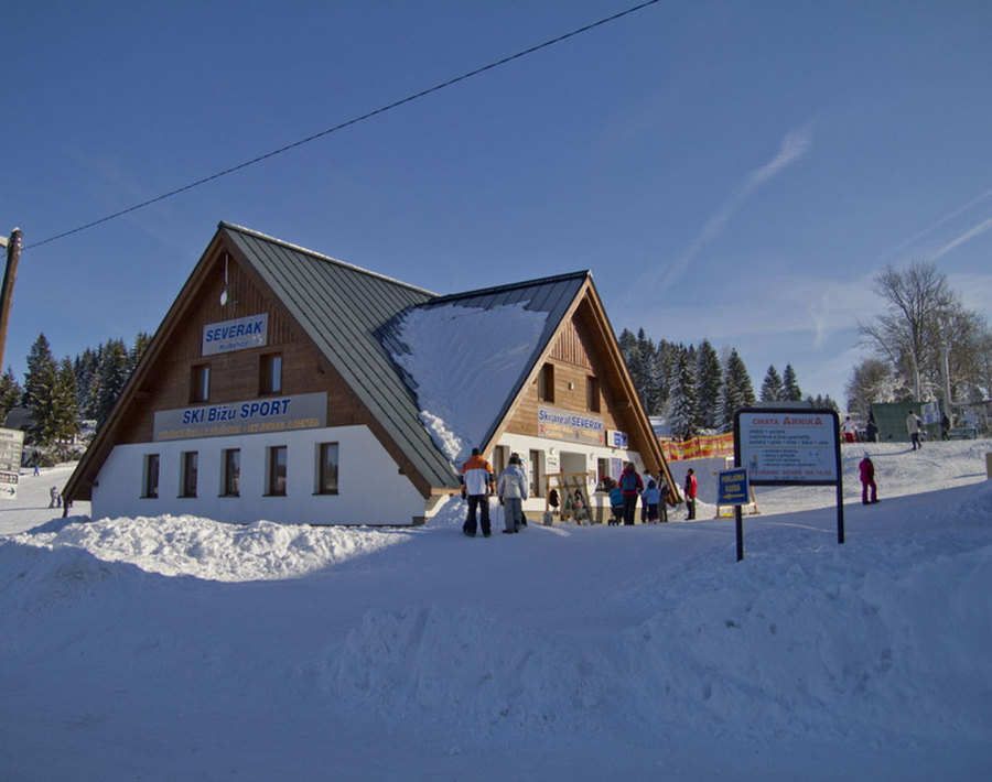 Půjčovna a lyžařská škola SKI Bižu SPORT. Rezervace na telefonu 605 907 935.