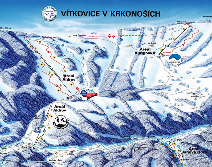 Areály Aldrov, Janova Hora a Vurmovka nabízejí návštěvníkům veškeré technické zázemí : restaurace, občerstvení,sociální zařízení, skiservisy, půjčovny, lyžařské a snowboardové školy, stanici Horské služby s ošetřovnou.