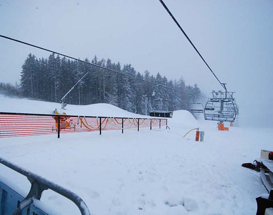 Systém technického zasněžování - sněžné dělo ventilátorové TechnoAlpin, 2 zasněžovací tyče, 6 ks sněhových děl.