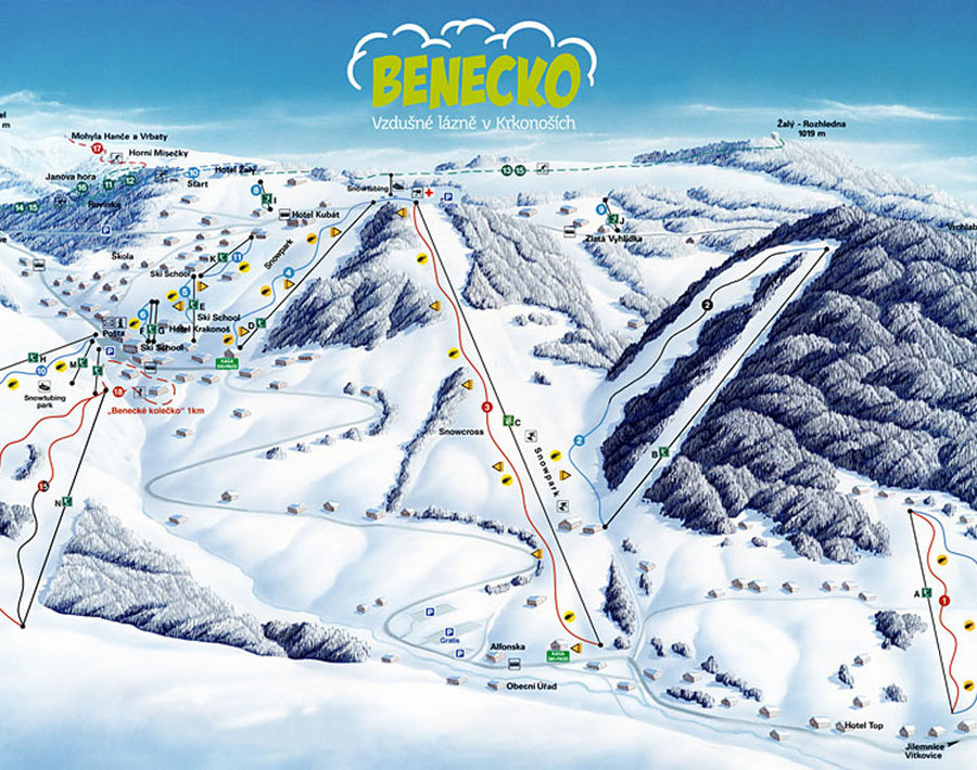 Zajímavá poloha střediska (900 m.n.m.) nabízí jedny z nejkrásnějších výhledů v Krkonoších.
