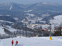 V areálu jsou skibary i rychlé občerstvení, půjčovny, servis i lyžařské školy.