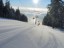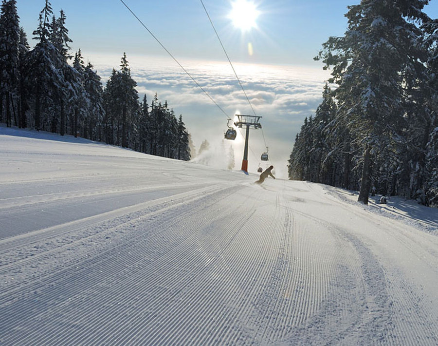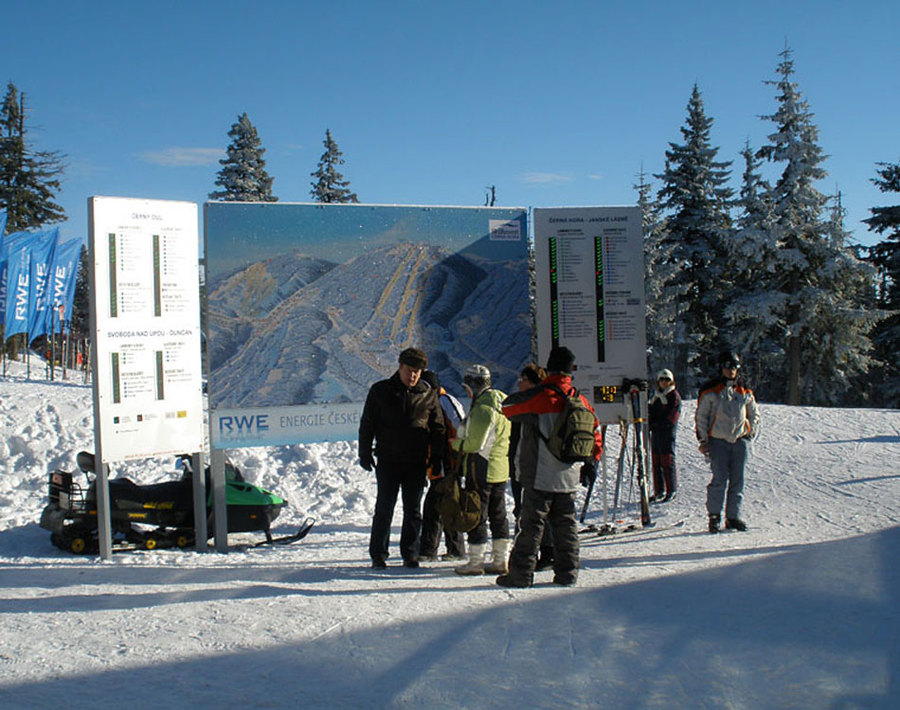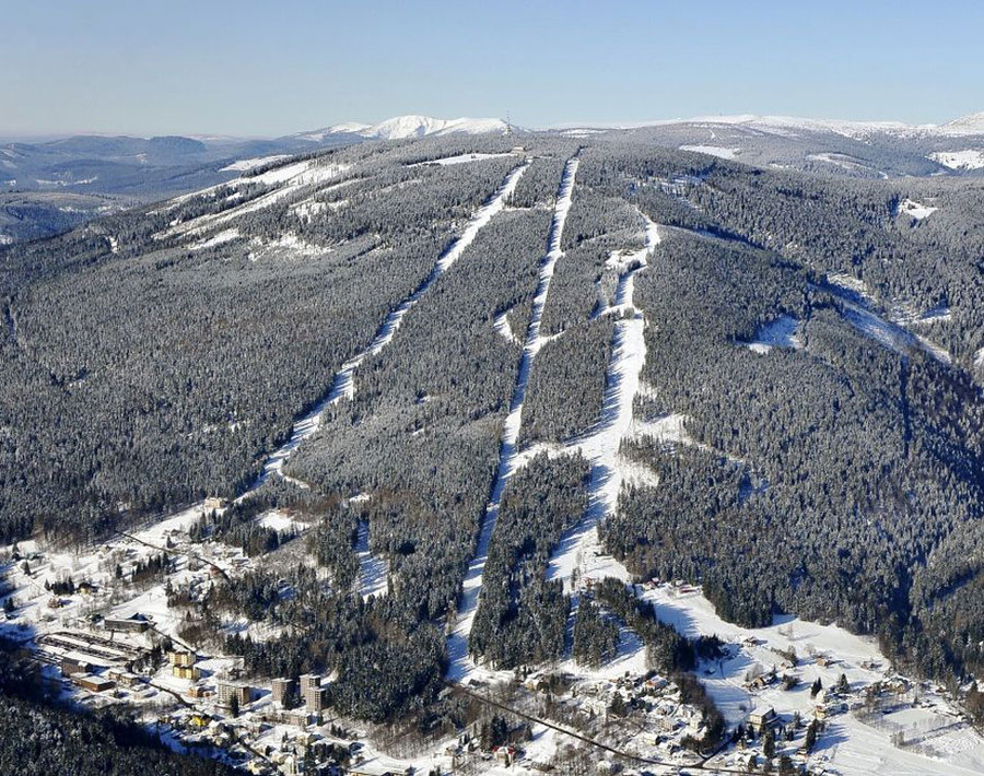 Terény pro sjezdové lyžování se nachází na jižních až jihovýchodních svazích Černé a sousední Světlé hory. Lyžaři mají k dispozici 2 lanové dráhy a 15 lyžařských vleků různých typů a délek. Skiareál disponuje novou 8-mi místnou kabinkovou lanovou dráhou. Jedná se o jedinou lanovku tohoto druhu v České republice. Sjezdové tratě areálu patří k nejdelším v Čechách, dosahující délky až 3km. Hlavní sjezdové tratě jsou vybaveny zařízením na výrobu technického sněhu. Lyžařské terény jsou vhodné rovněž pro rodiny s dětmi, protože jsou v areálu sjezdové tratě od „cvičných luk“ až po náročné sjezdovky. Pro běžkaře je pravidelně strojově upravováno 50km tratí, sáňkaři mohou vyzkoušet 3,5km dlouhou „Černohorskou sáňkařskou cestu“.